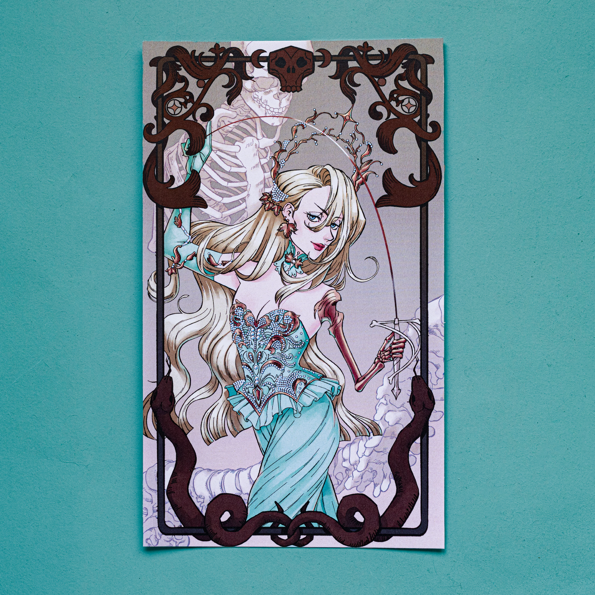 Tarot-card style drawing inspired by Ianthe from the Locked Tomb series.