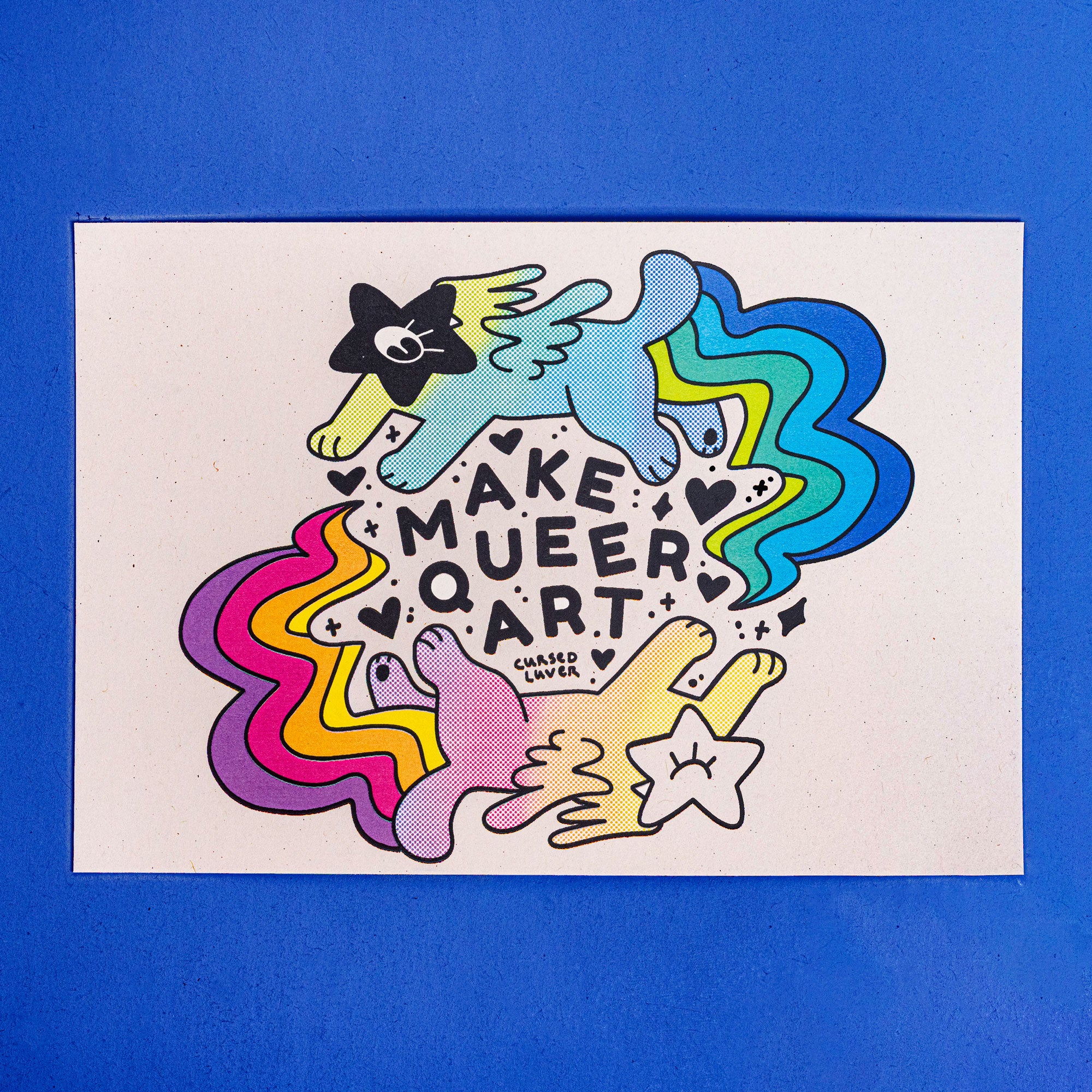 make queer art! ♥︎ an original illustrated print by CURSEDLUVER printed on 300gsm 100% Recycled Warm White Paper Stock
