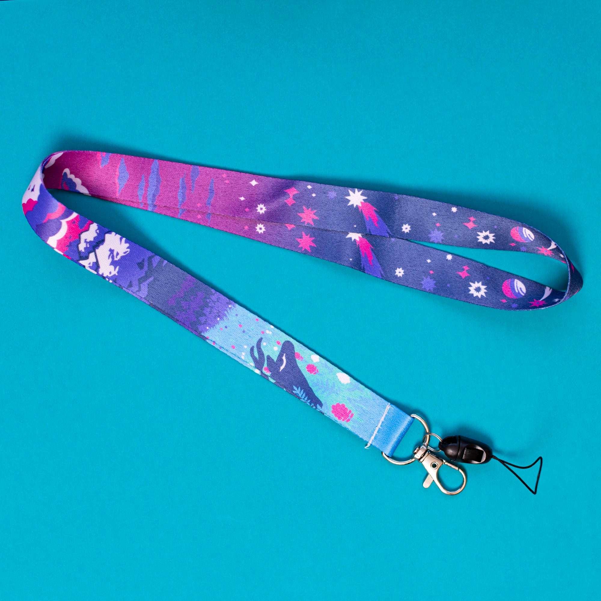 This lanyard is double-sided, featuring a sturdy metal clasp, and sublimate printed onto a soft silky fabric. Lanyards work great for holding keys, convention badges, and any other items you need in your daily life!