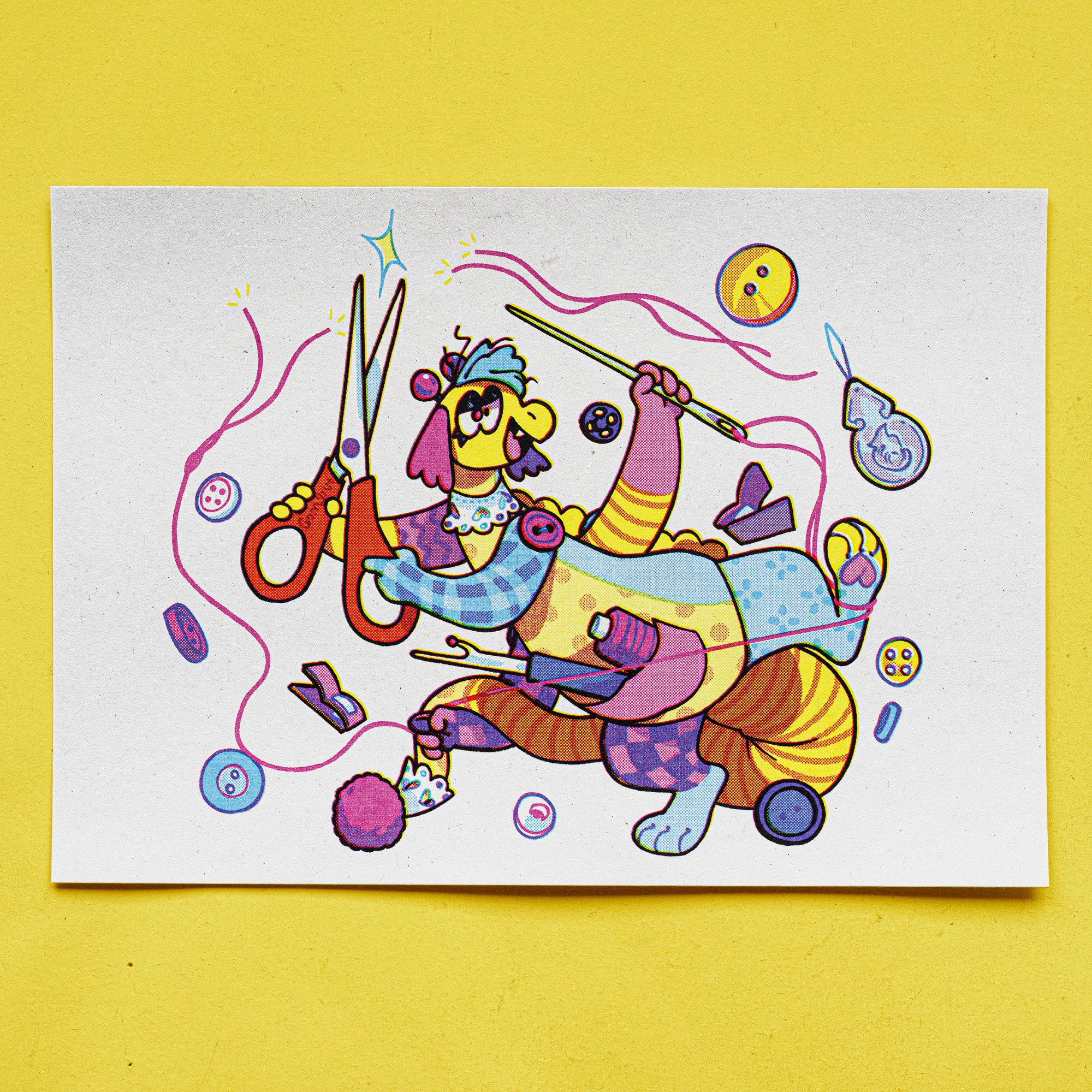 They're a helpful sewing buddy! Just keep an eye on them when they're using scissors... An Original print on 100% recycled stock by Gomgrut.