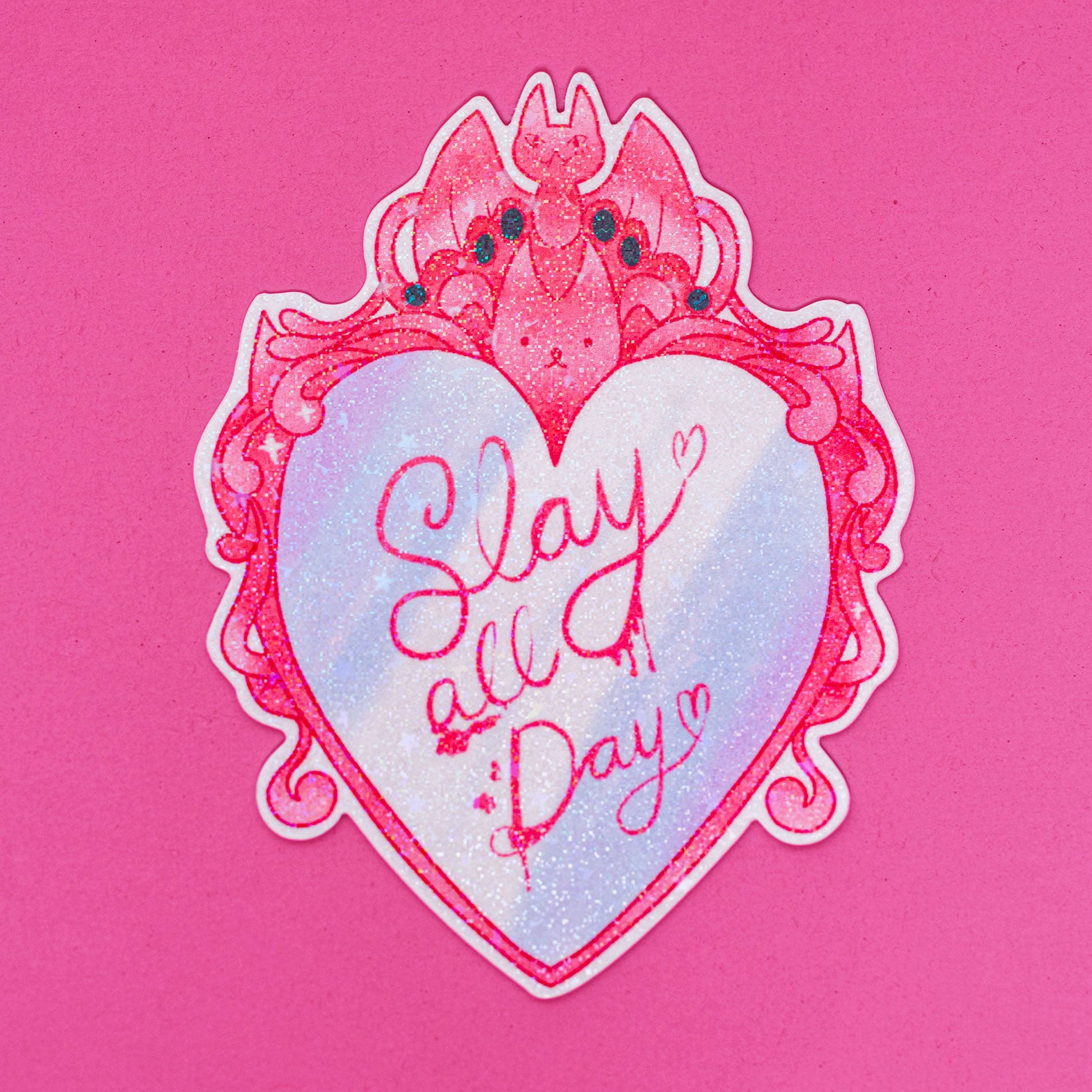 Slay while Slaying y'know, inspired by Draculaura from Monster High! Printed on high quality vinyl with a sparkly holographic stardust finish. Water proof, UV resistant and dishwasher safe!