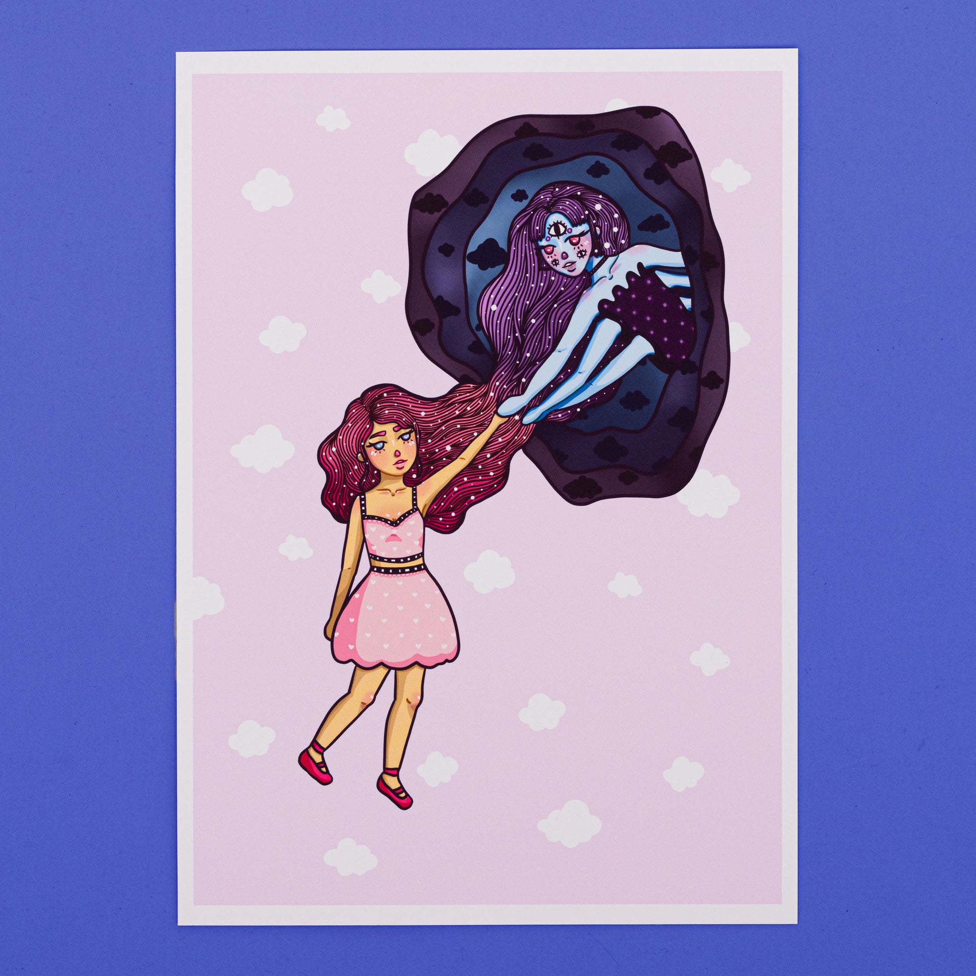 space girl, show me the stars, you know the galaxies of my heart ✧// Unframed a5 fine art print - printed in Melbourne using a Canon Pixma iP8760 on Epson Matte Archival Paper 189gsm. Please note colours on screen may vary slightly from the final printed artwork.